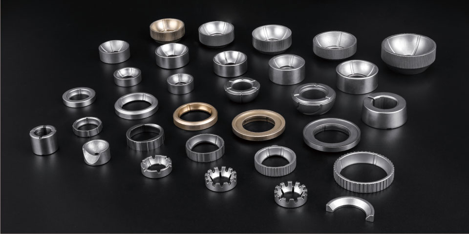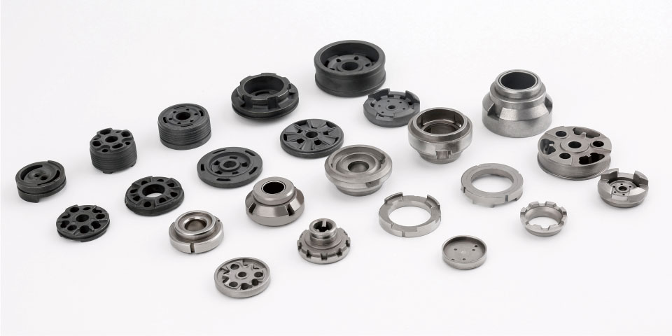 汽車減震器配件為常見的汽車零部件。該系列屬于功能件,對密度、強度的要求不高,一般采用Fe-Cu-C材料制作,其工藝與粉末冶金自潤滑含油軸承相似。